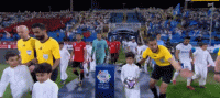 双方球员入场,比赛马上开始