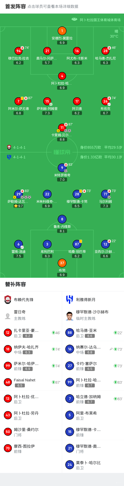 第32分钟,米特罗维奇补射破门改写比分,利雅得新月1-0