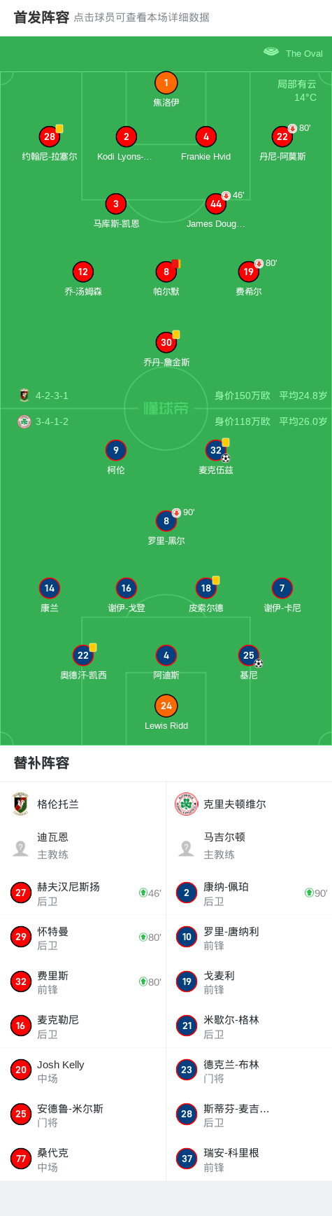 下半场补时第2分钟,克里夫顿维尔球员麦克伍兹打入一球。