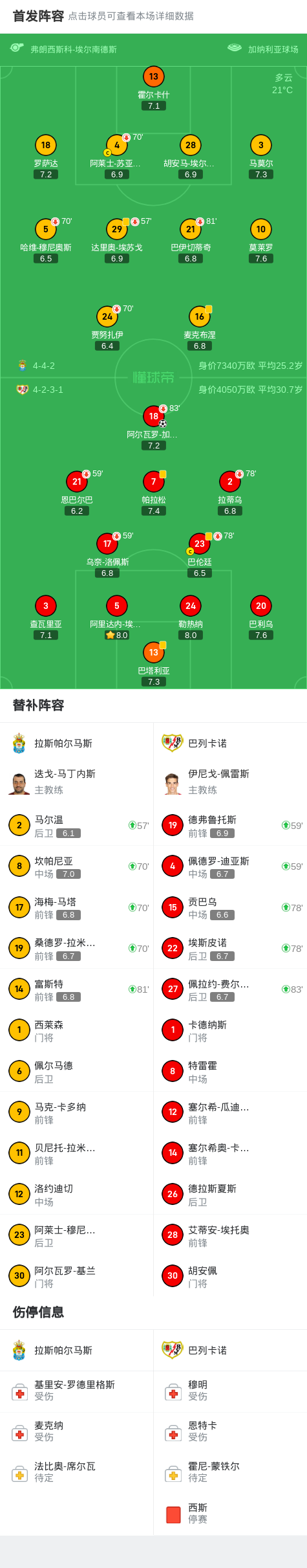 第66分钟,巴列卡诺球员阿尔瓦罗-加西亚打入一球。