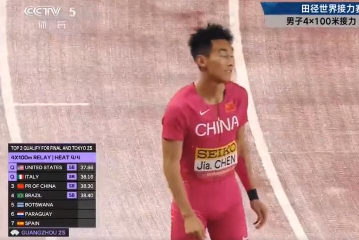 男子4×100米接力:中国队38秒30获小组第三,跑出赛季最佳但无缘决赛gaoniu @懂球帝2025-05-10 21:065月10日,广州世界田径接力赛男子4×100米接力,中国队38秒30获小组第三,跑出赛季最佳但无缘决赛。中国队四棒谢震业、曾克理、王胜杰、陈佳鹏,38秒30获得小组第三,也是中国队赛季最好成绩,不过无缘决赛,未能直通世锦赛。第三组的日本队跑出37秒84,刷新赛季最好成绩。展开更多