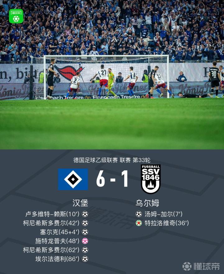 时隔七年重返德甲!汉堡6-1大胜乌尔姆,柯尼希斯多费尔双响