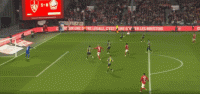 第42分钟,打破僵局,阿若克头槌破门,布雷斯特1-0