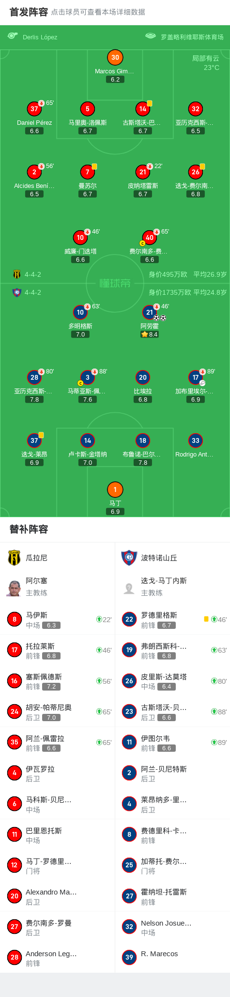 波特诺山丘2-0瓜拉尼,阿劳霍独中两元