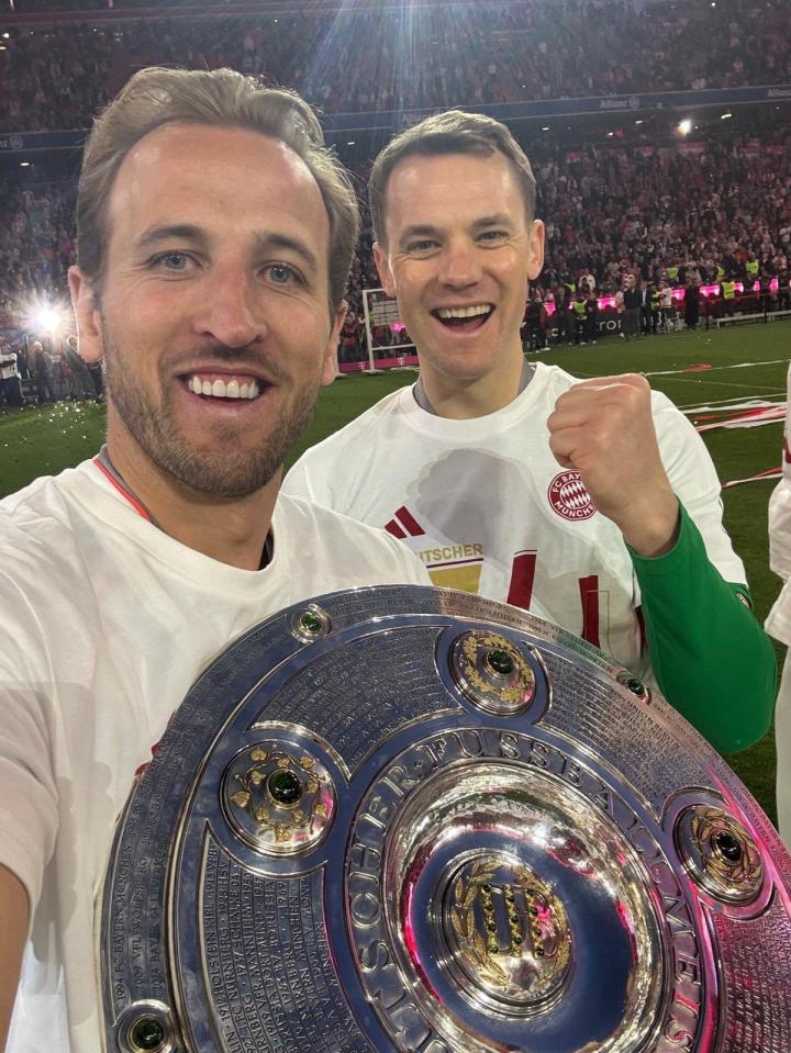凯恩发了两张照片,诺伊尔和戴尔出镜,凯恩写道:“一个在啤酒浴前,一个在啤酒浴后 😂😂 冠军!”