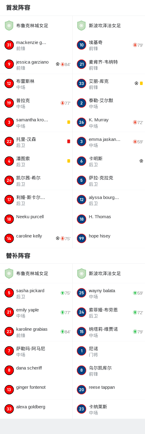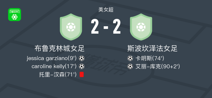 布鲁克林城女足2-2斯波坎泽法女足,jessica garziano破僵,艾丽-库克扳平比分