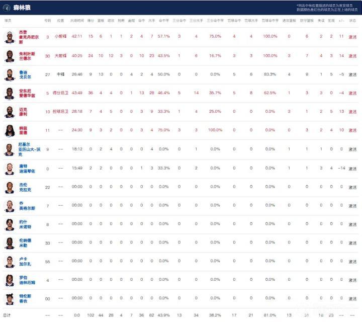 球员全场数据