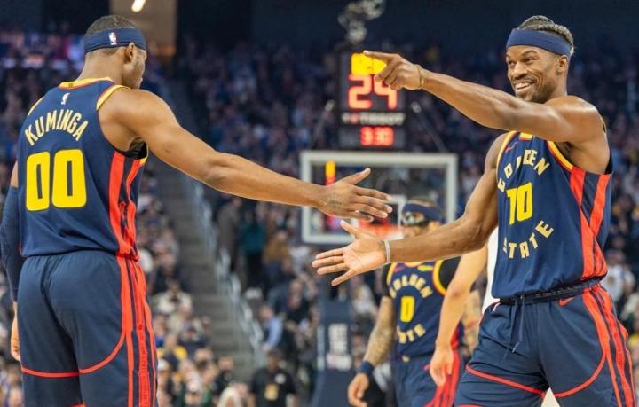 本场比赛,吉米-巴特勒得到了33分,库明加得到了30分,这也是自2022年4月24日库里和克莱-汤普森在对阵掘金的系列赛G4同场砍下30+得分以来,首次有两名勇士球员在季后赛中同场得到30+得分。