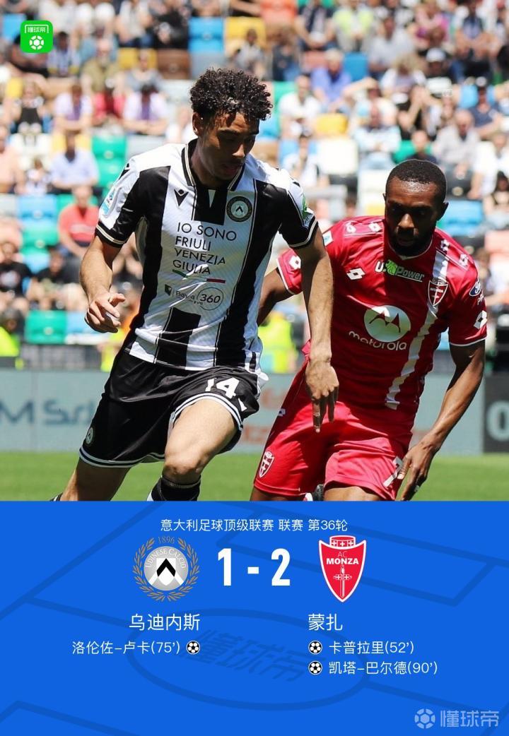 乌迪内斯1-2蒙扎,卡普拉里、卢卡破门,巴尔德绝杀