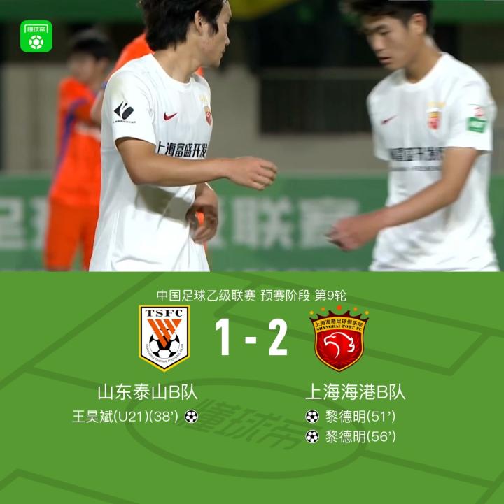 北京时间5月11日,中国足球乙级联赛预赛阶段第9轮,山东泰山B队主场迎战上海海港B队。比赛中,山东泰山B队由王昊斌取得进球。上海海港B队方面,黎德明表现出色,完成梅开二度。最终,山东泰山B队以1-2不敌上海海港B队。