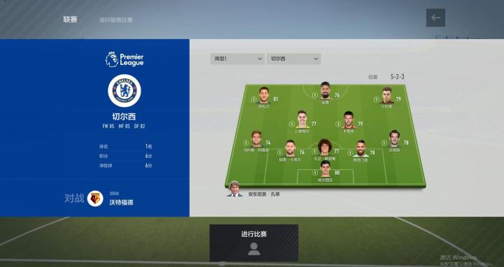在FIFA OL4中,联赛模式进行了较大的改动。首先玩家可以根据自身实力自由选择难度。进入联赛模式后,准备开始比赛的界面有了非常大的改观,一张首发阵容图将直观的出现在玩家眼前。