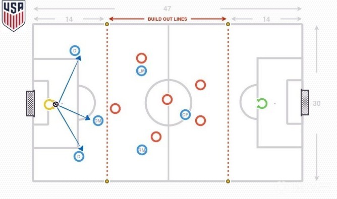 “教练手册”认为,“组织线”(无论离球门14码还是半场)都是不可思议的训练发展工具。批评者可能会说,这不符合现实的情况,因为它不会出现在11人制比赛中。然而,它确实鼓励队员在比赛中利用团队配合从后场倒出,这对年轻球员来说非常重要。此外,随着球员身体和技术上的成熟,他们也会逐步理解这一点。