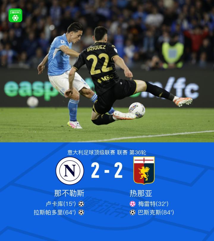 那不勒斯2-2热那亚,卢卡库、拉斯帕多里破门,巴斯克斯扳平