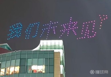 其中,无锡动用200架无人机进行夜空灯光秀表演,组成“生日快乐”“多哈夺冠”等字样。