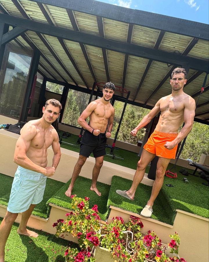 伊维萨岛度假不忘健身,格雷茨卡和队友秀肌肉