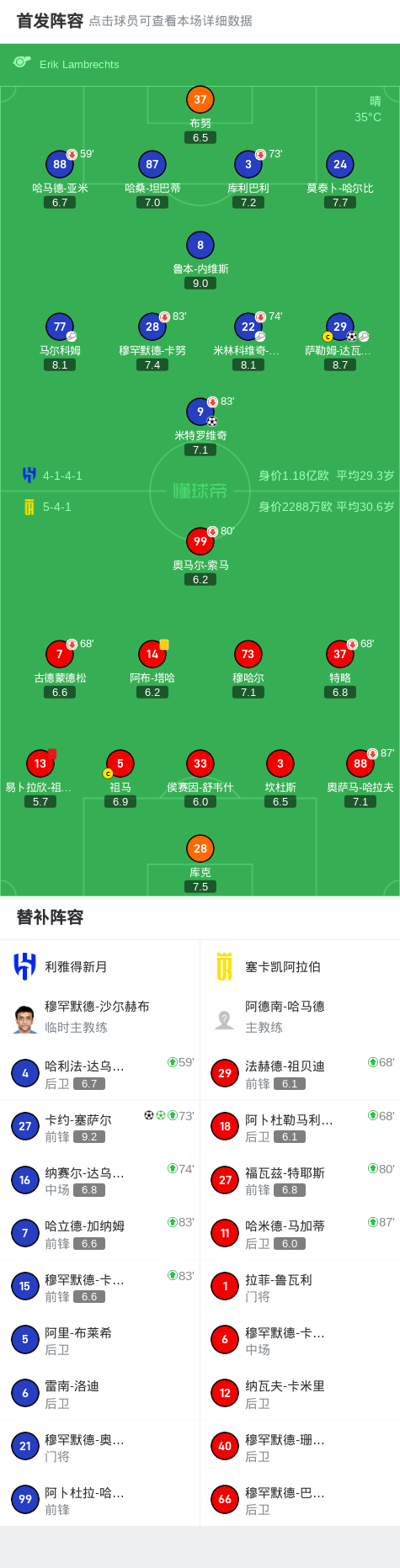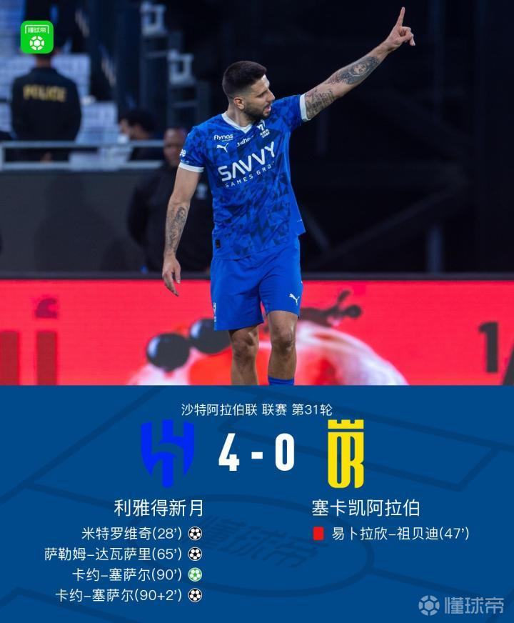 新月4-0塞卡凯阿拉伯,达瓦萨里传射,米特罗维奇建功,塞萨尔双响