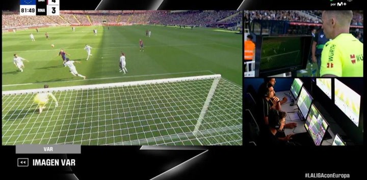 于是,VAR提供给埃尔南德斯做判罚决定的画面只有两个视角,但实际上,在电视转播中大家可以看到通过五个不同的摄像机角度拍摄的总共六个回放画面。