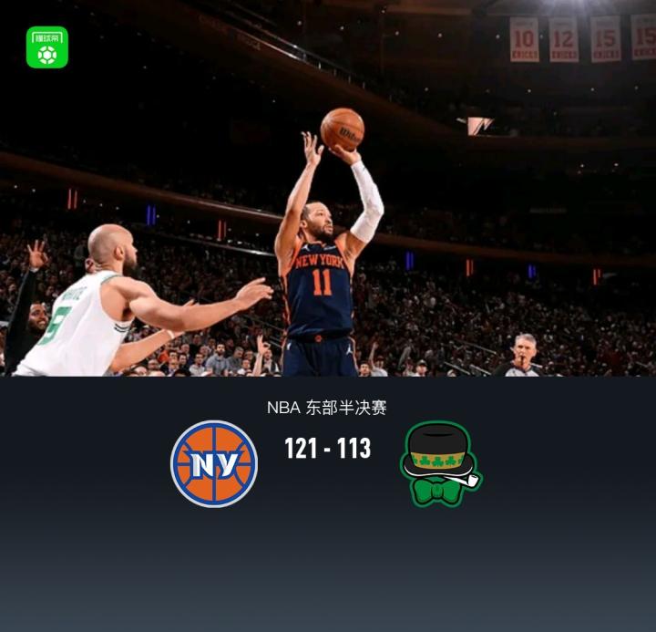 纽约尼克斯布伦森39分5板12助,唐斯23分11板,布里奇斯23分7板3助4断,阿奴诺比20分3板2助;波士顿凯尔特人塔图姆42分8板4助4断2帽,德里克-怀特23分3板2助,布朗20分7板2助,普里查德12分。
