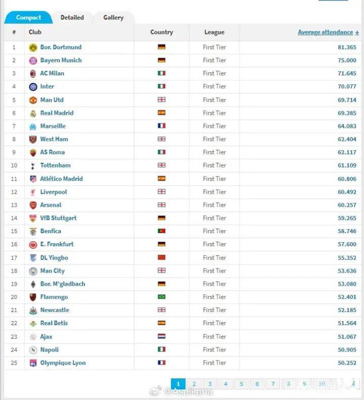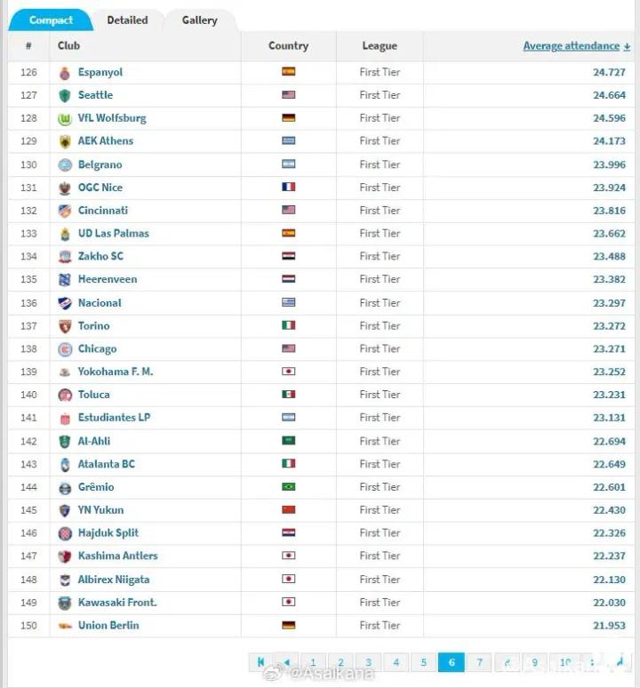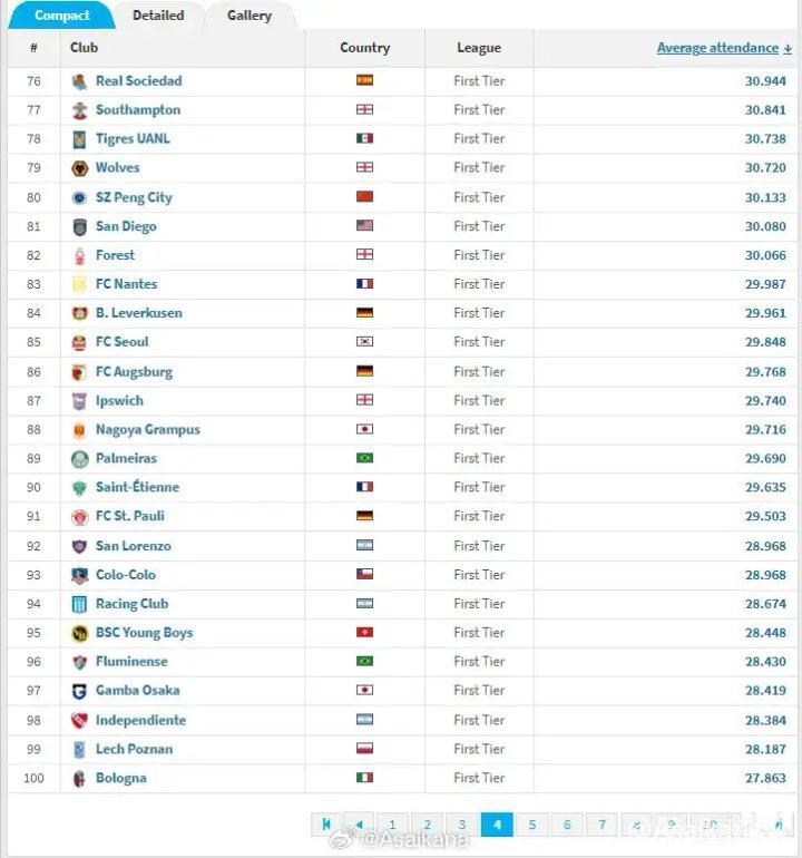 我看到一些报道称据德转统计大连英博主场场均观众人数以43115人位列亚洲第一,全球第34。但这个数据看上去似乎并不包含最新一场主场数据。事实上,德转比赛报告里的观众人数一般会延迟于比赛报告更新,这也许是报道数据有误的原因。我刚刚看了一下,新的数据目前已经更新,大连英博应该暂时是全球顶级联赛第17位(55352人),比曼城(18位)要高。不过,我觉得这个数据采集节点有问题,一般来说,这种综合数据,是半赛季一统计或者一整个赛季一统计,现在中超比赛轮次太少,分母太少,导致场均数每轮都会有较大幅度变动,而欧洲基本上已经联赛结束,两相对比参考性不是很强,应在15轮后或赛季结束进行统计为宜。此外,这个统计叫上座人数或现场观众人数统计,不宜叫做“上座率”。 不过无论怎么统计,大连梭鱼湾如此高人气,亚洲第一肯定是没跑的。