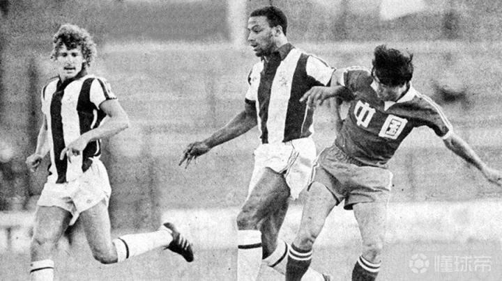 1977年,19岁的雷吉斯签约西布朗成为职业球员,三项国内赛事全部首秀破门。他很快与另外两名黑人队友——边前卫劳里·坎宁安、边后卫布伦登·巴特森组成了威震英伦的“三度空间”(The Three Degrees)。