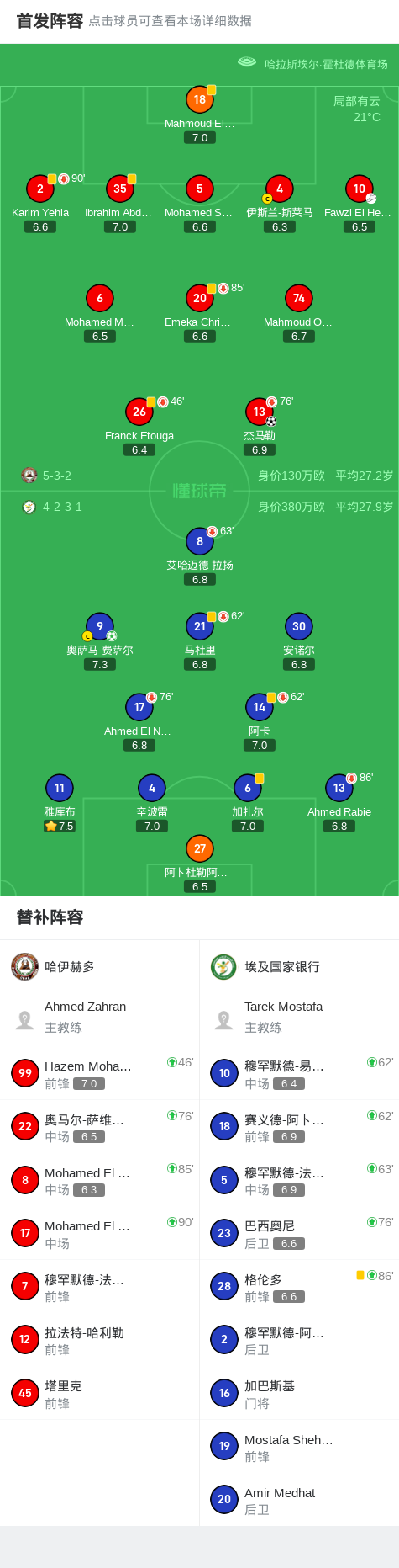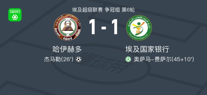 哈伊赫多1-1埃及国家银行,杰马勒破僵,奥萨马-费萨尔救主