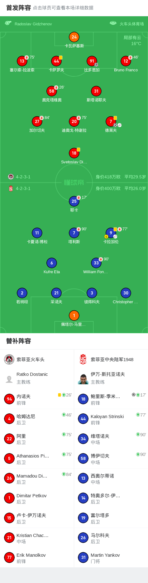 索菲亚火车头2-1逆转索菲亚中央陆军1948,德莱夫1射1传,比多恩加破门