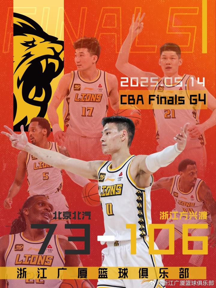 3-1拿到冠军点,广厦队官方:极限碾压,雄狮北上,连下两城凡尔赛小木屋 @懂球帝2025-05-14 23:255月14日晚,CBA总决赛第四场,广厦男篮客场106-73大胜北京男篮,3-1领先并率先拿到冠军点。赛后,广厦队官方社媒写道:“极限碾压!雄狮北上,连下两城!”5月17日晚19点35分,总决赛G5将移师广厦队主场,手握赛点的广厦将继续冲击队史首座总冠军奖杯。展开更多