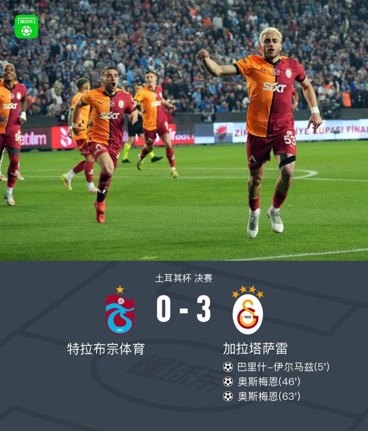 加拉塔萨雷3-0特拉布宗体育夺土耳其杯冠军,奥斯梅恩双响