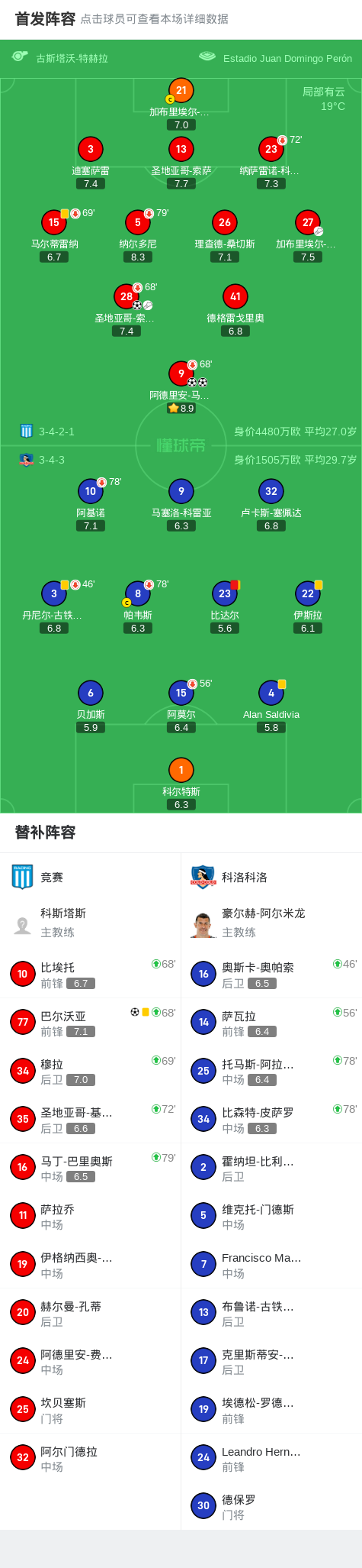 第36分钟,竞赛球员圣地亚哥-索拉里助攻阿德里安-马丁内斯打入一球。