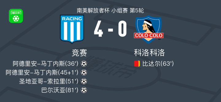 北京时间5月15日南美解放者杯小组赛第5轮,竞赛与科洛科洛展开较量。比赛中,阿德里安-马丁内斯在圣地亚哥-索拉里的助攻下首开纪录,并随后再入一球完成梅开二度。此后,圣地亚哥-索拉里亲自攻入一球扩大领先优势。比赛尾声阶段,巴尔沃亚接加布里埃尔-罗哈斯的助攻锦上添花。最终,竞赛以4-0战胜科洛科洛。