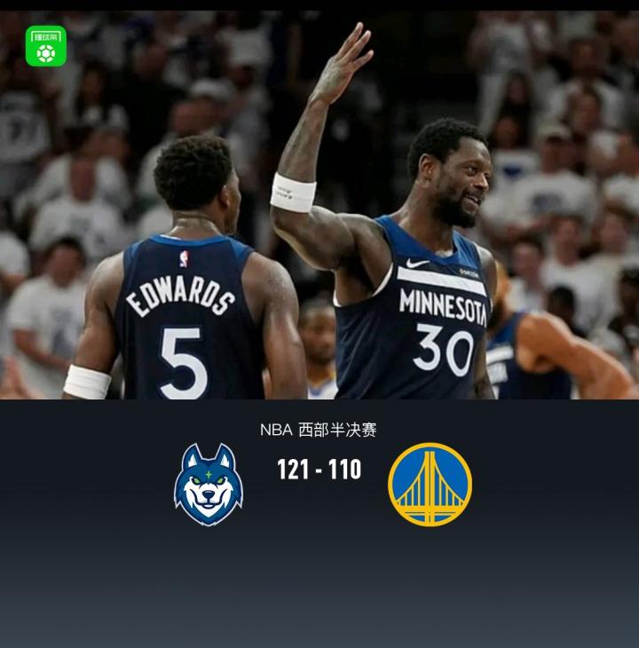 北京时间5月15日,NBA季后赛西部半决赛G5森林狼主场迎战勇士。首节森林狼便建立7分领先,次节勇士多次迫近比分,但后半节森林狼康利、兰德尔分别领衔高潮将分差拉大至两位数,半场森林狼62-47勇士,第三节多数时间勇士依靠波杰姆斯基、库明加保持拉锯,节末段森林狼再度打出高潮最大领先25分,末节勇士穆迪登场连续得分领衔高潮一度追至9分分差,森林狼迅速调整稳住局面,最终森林狼121-110勇士,系列赛大比分4-1晋级西决。