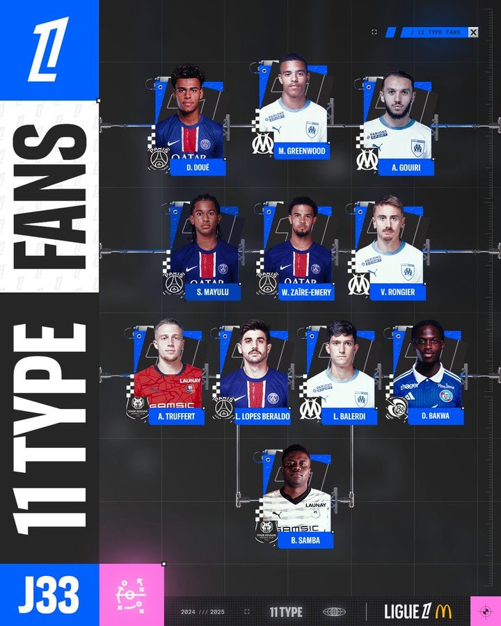 法甲第33轮最佳阵容:巴黎、马赛各4人入选盖坦9 @懂球帝2025-05-15 15:43法甲官方公布了联赛第33轮的最佳阵容,巴黎、马赛各4人入选。法甲第33轮最佳阵容 阵型4-3-3守门员:布莱斯-桑巴(雷恩)后卫:特吕费尔(雷恩)、贝拉尔多(巴黎)、巴列尔迪(马赛)、巴夸(斯特拉斯堡)中场:马尤卢(巴黎)、扎伊尔-埃梅里(巴黎)、隆吉耶(马赛)前锋:杜埃(巴黎)、格林伍德(马赛)、古伊里(马赛)展开更多