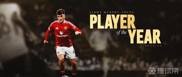 曼联官方宣布,左后卫哈里-阿马斯在2024-25赛季表现出色,被评为曼联年度最佳年轻球员(吉米-墨菲奖)。
