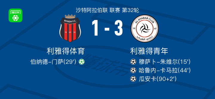 利雅得青年3-1利雅得体育,瓜安卡、哈鲁内-卡马拉建功