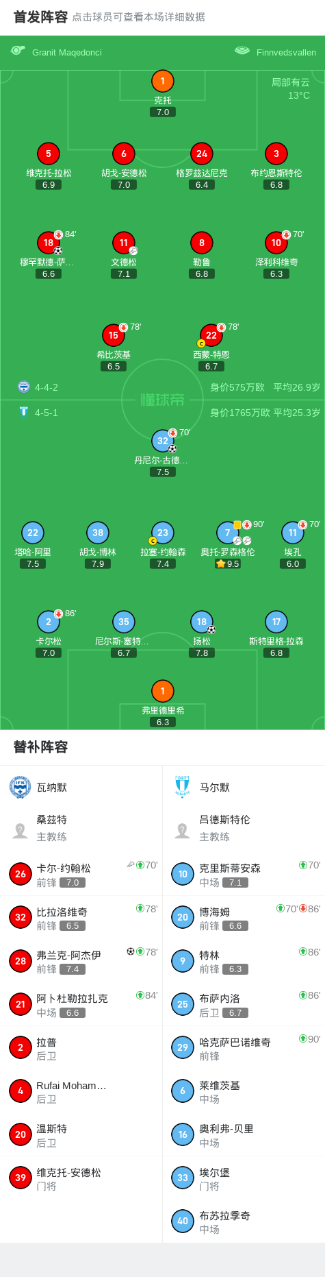 第34分钟,瓦纳默球员文德松助攻穆罕默德-萨勒哈迪打入一球。