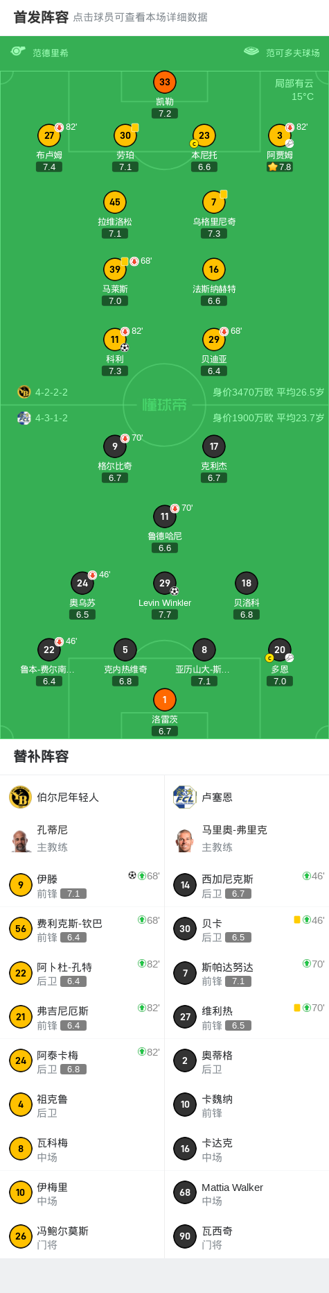 第66分钟,卢塞恩球员多恩助攻Levin Winkler打入一球。
