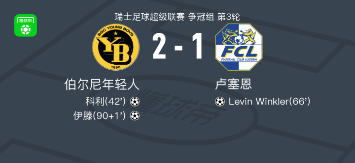 伯尔尼年轻人2-1卢塞恩,伊滕建功,科利破门