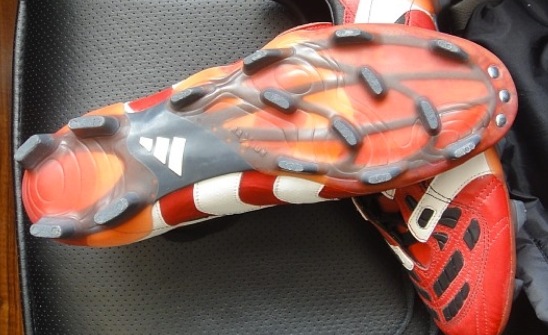Adidas的日系释迦鞋底,虽然很多人把它归类于hg,但我个人感觉从鞋钉分布来看,绝对应该属于fg,只是这种的鞋底,更适合非比赛类的民间场地,在日本这种鞋底非常多。释迦的走俏,很大程度上也是基于鞋底的给力表现,所以释迦底可以排名第二。