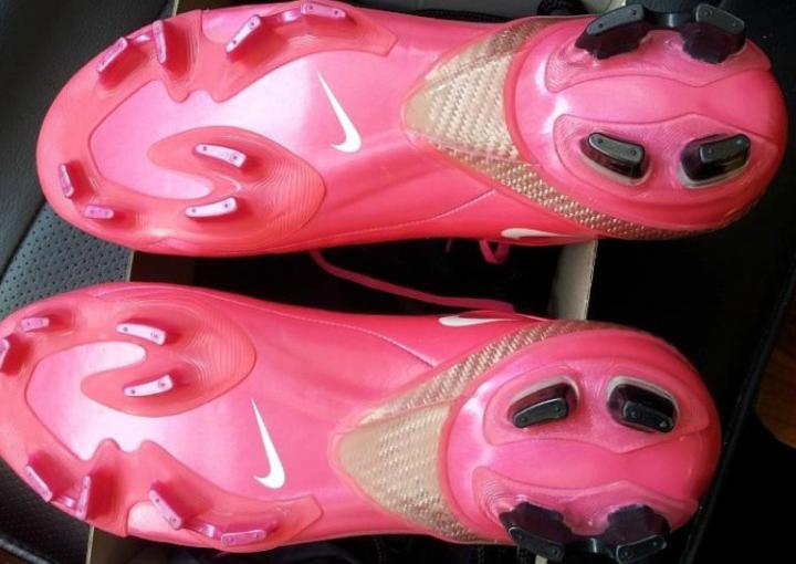 1.NIKE BOMBA FINALE II,小李子上买的,699。晚上上脚试了试,感觉不错,摩擦条能起效,搓出来的力量、弧度都可以。今天打了几个比较满意,有左侧内脚背转近角,有左侧搓球下坠进远角,下坠球比较好踢。不怎么挤脚,还比较轻。性价比还可以。AG、TF混钉,防震比较好,有伤的左脚踝没带护具也不疼。抓地力也可以,今天下小雨,人草场地滑,但没问题。强推!by@司马宣王