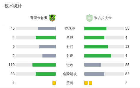 上半场补时第2分钟,米古拉夫卡球员Ruslan Palamar打入一球。