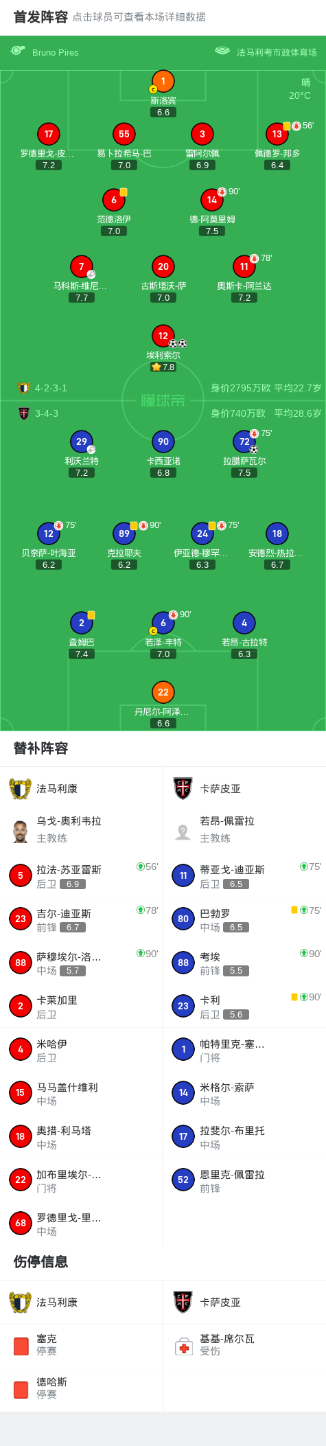 第37分钟,法马利康球员马科斯-维尼西奥斯助攻埃利索尔打入一球。
