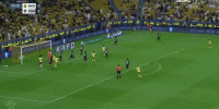第44分钟,战术任意球,布罗佐维奇吊射稍稍偏出