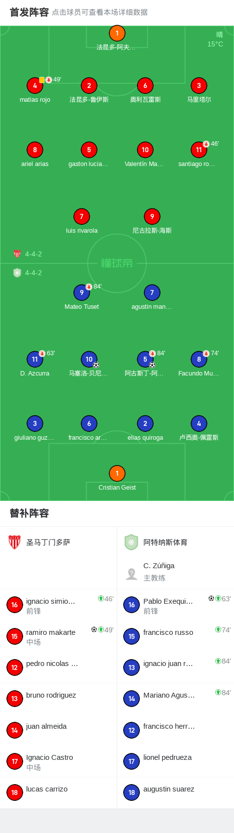 阿特纳斯体育3-1圣马丁门多萨,Pablo Exequiel Palavecino、马塞洛-贝尼特斯破门