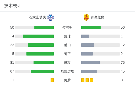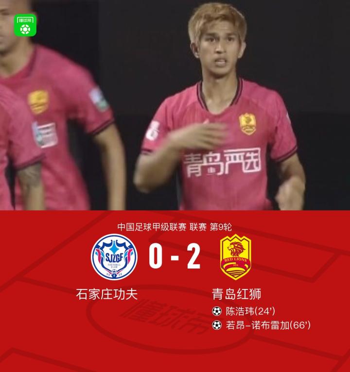 石家庄功夫0-2青岛红狮,陈浩玮传射,诺布雷加破门