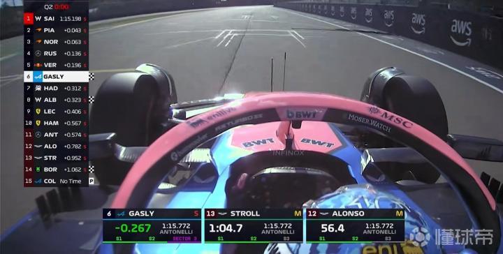 两台马丁考虑到C6轮胎的过热情况,大胆使用中性胎展开飞驰,阿隆索上到第6,斯特罗尔上到第7,这也意味着法拉利双车Q2出局!!!