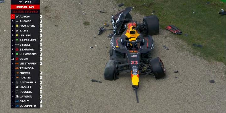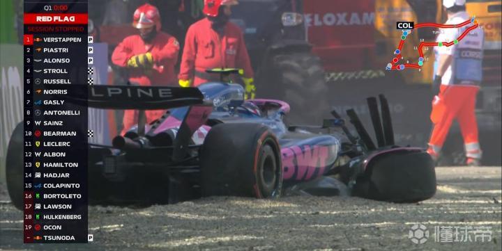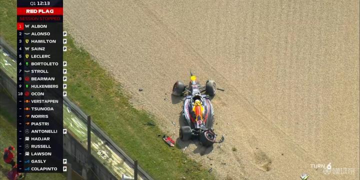 红旗!角田在6号弯高速失控上墙,Q1暂停!!!