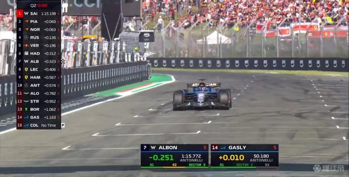 两台威廉姆斯刷新成绩,塞恩斯第一段刷紫来到榜首,阿尔本上到第7!