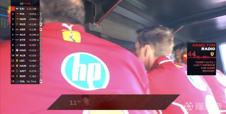 法拉利双车Q2出局(勒克莱尔第11,汉密尔顿第12),安东内利第13,角田裕毅、科拉平托在Q1上墙,二者的赛车严重受损。
