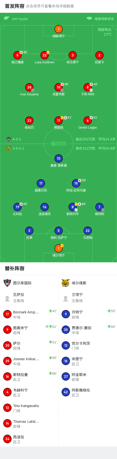 第6分钟,图尔库国际球员于利-科科助攻Axel Kouame打入一球。
