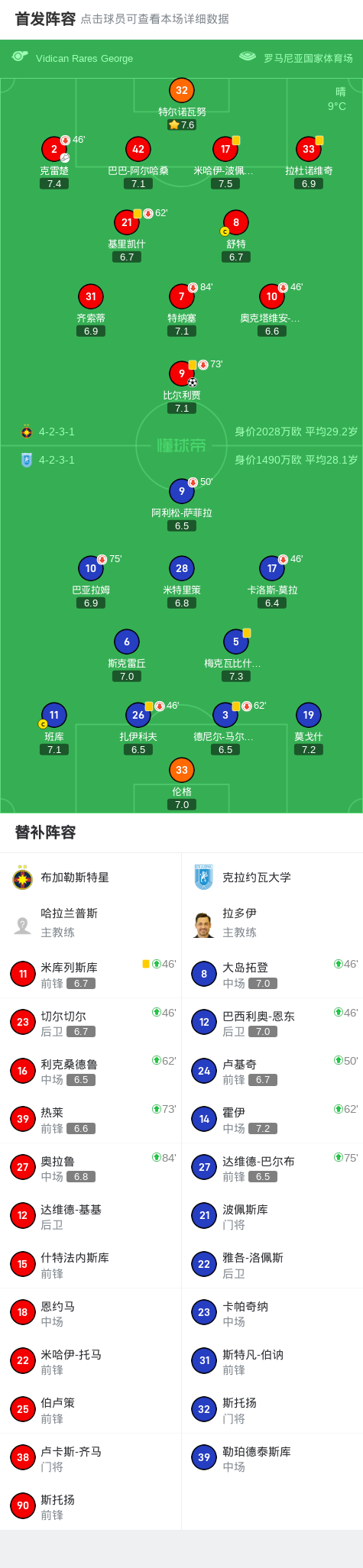 布加勒斯特星1-0克拉约瓦大学取罗甲5连胜,比尔利贾助球队取胜